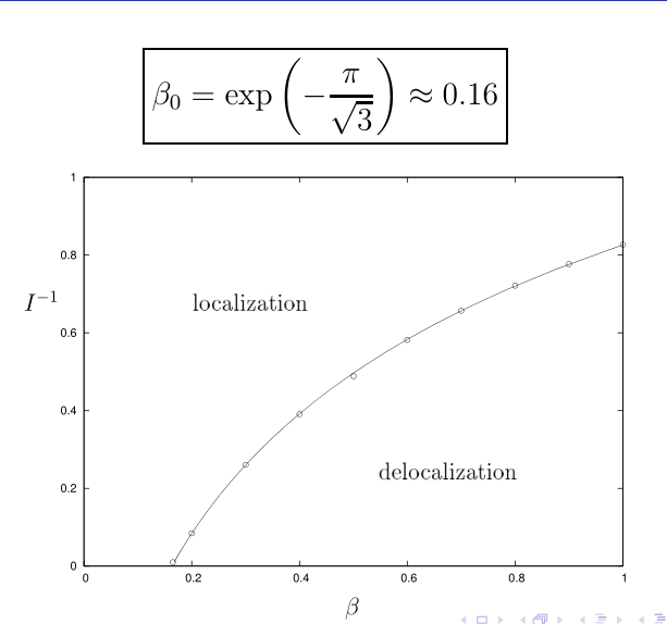 The phase diagram of the localization-delocalization transition in inertia-elasticity plane: theory(line) and numerical simulations